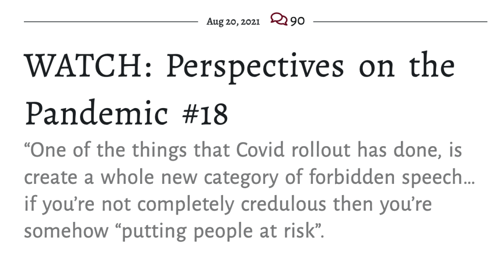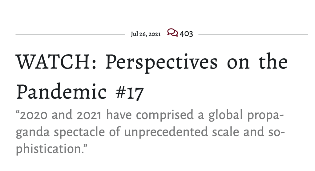 These and other videos can also be viewed on Odysee at “Perspectives on the Pandemic” https://odysee.com/@PerspectivesOnThePandemic:f