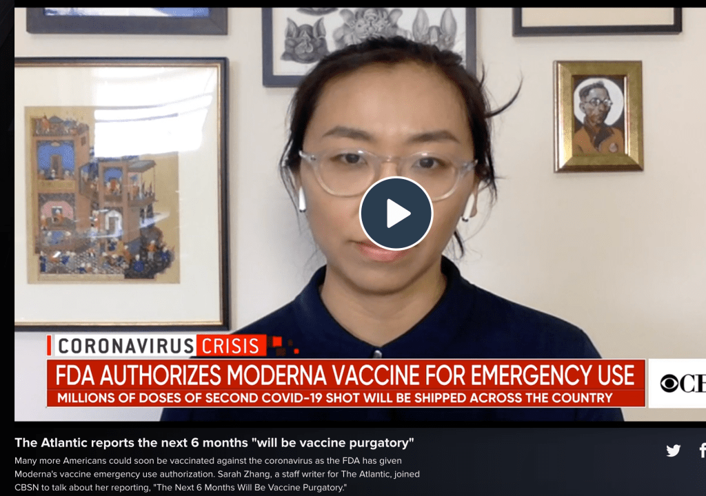 They would also apologize for this December 19, 2020 video in which Sarah Zhang is being interviewed on CNN–click here to watch the video: https://www.cbsnews.com/video/the-atlantic-next-6-months-vaccine-purgatory/#x