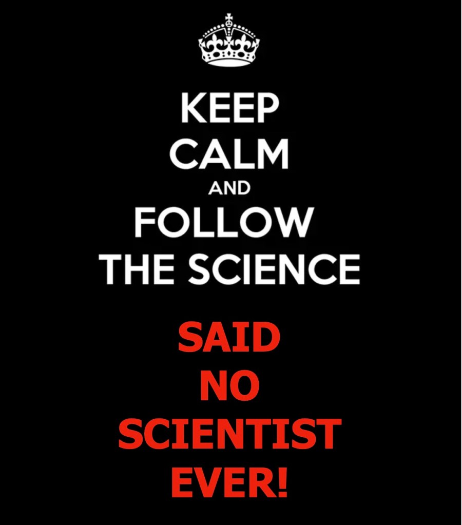 The AUTHORITY has used different names—usually abbreviated into a series of letters. In the United States it was WHO, CDC, NIH, AMA, FDA and others. Without any substantial scientific evidence, the AUTHORITY carried out one of the most effective propaganda campaigns in the history of the world designed to control the minds and behavior of the human population. It continues to do so. Who or what is this AUTHORITY? There are different theories. I need more data in order to decide which, if any, are true. However, I can accurately describe every single tool of mind/behavior control that has been used against you and me. The “Follow the Science” slogan is a blatant example. It is a lie designed to manipulate behavior. We would never have followed the hidden message, which is